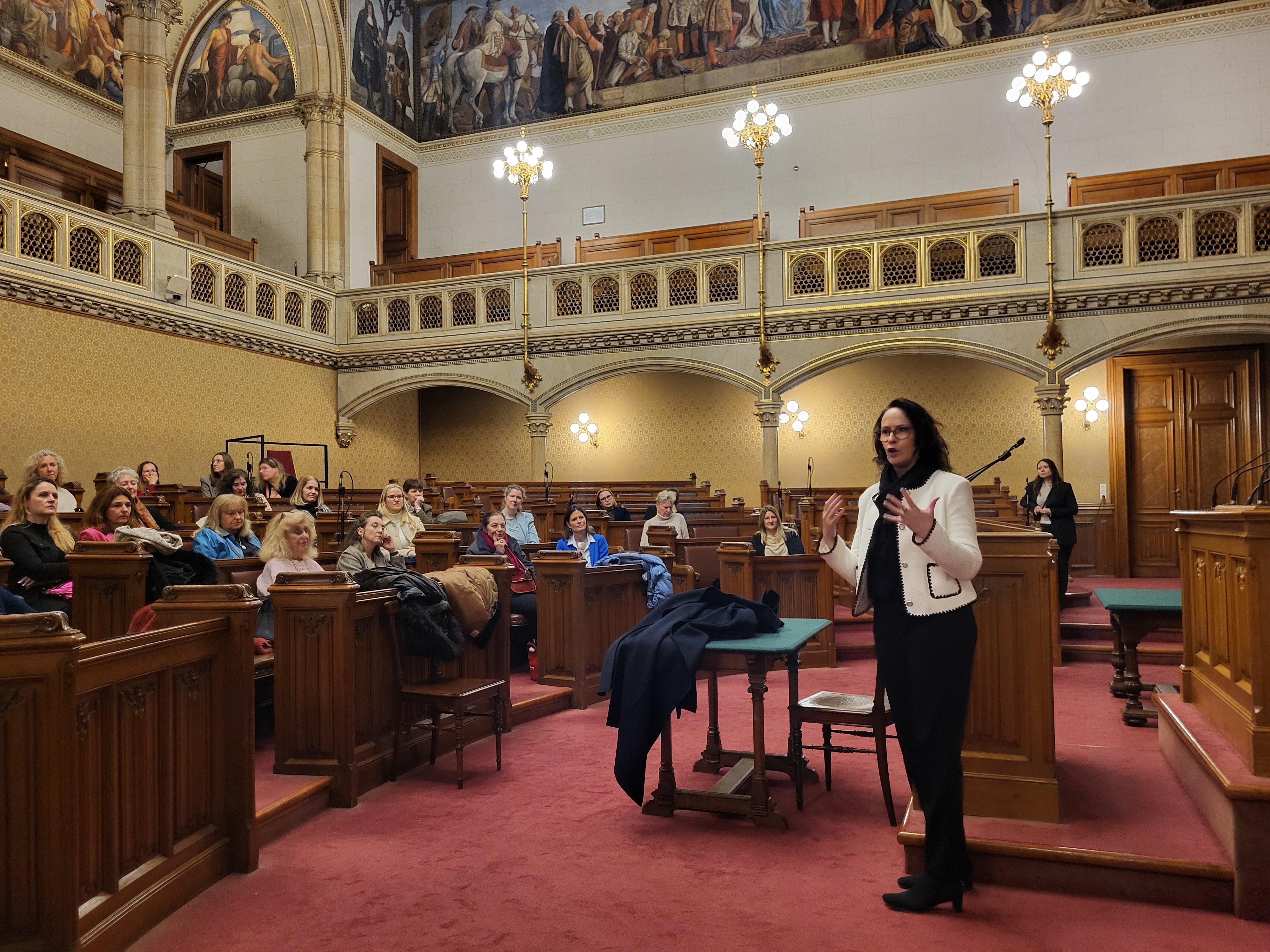 1500 Räume, über 2000 Fenster und „sprechende Steine“ – unser diesjähriges vorweihnachtliches Mentory Club Special startet mit einer exklusiven Führung durch das Rathaus, bei der wir neben diesen architektonischen Details u.a. auch Einblicke in den Ablauf der Landtags- und Gemeinderatssitzungen bekamen. Ebenso vergnüglich verlief der anschließende Talk mit Kasia Greco, wo die nicht-amtsführende Stadträtin lustige Anekdoten über ihre internationale Familie und die Stationen ihres bisherigen Karrierewegs zum Besten gab. Getreu ihres Mottos „Ganz oder gar nicht“ hatte sie bereits mit 28 Jahren ihre erste Führungsposition inne und ist seither in der Politik, sowie als Autorin, Coach und Unternehmerin tätig. Im Vordergrund standen für sie stets die Menschen. Dementsprechend groß ist ihr Engagement im Bereich Interessensvertretungen und im Gesundheitswesen. Und auch 2026 dürfen wir auf neue Projekte gespannt sein.